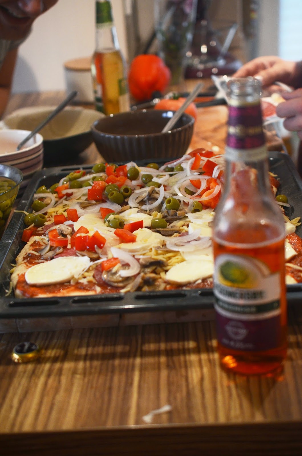 Podczas przygotowania pizzy, uśmialiśmy się co nie miara – zresztą możecie sami zobaczyć 🙂 Uprzedzę Wasze pytania – pizza wyszła, chociaż chłopaki na swojej części mieli górę składników niczym najwyższy szczyt na świecie 😉