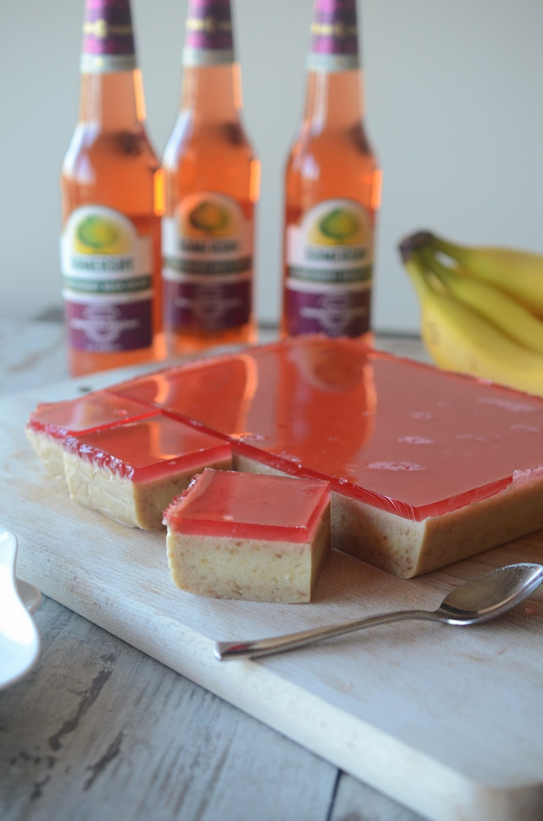 Dzisiaj, w końcu ;), przepis na ciasto inspirowany nowym smakiem Somersby Blackberry, o którym pisałam tutaj. Przepis jest prosty w wykonaniu. Najlepsze jest to w nim, że do tego ciasta potrzebujemy aż 3 składników : banany, masło i galaretki. I do tego bez pieczenia 🙂 Czego chcieć więcej?? Spróbujcie. W smaku przypomina trochę sernik na zimno o smaku bananowym.